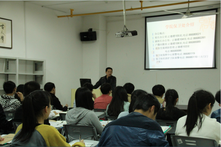 为加强公寓学生干部队伍建设,提高学生干部的政治素质和工作能力,锻炼和塑造一支纪律严、作风正、能力强的学生宿管骨干队伍。4月15日下午,学生处公寓管理科在大学生活动中心203室举办第十一期公寓学生干部培训班开班仪式暨校园安全知识讲座。院、系两级公寓管理学生组织主要干部、优秀公寓思政助管员等40余人参与此次培训。