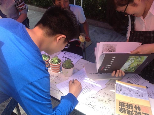 活动现场,有很多同学被主题所吸引,纷纷询问如何进行交换,其中有位参与换书的同学说:有些书放着也是放着,不如给那些需要读书的人,还能换一盆小盆栽,提高我们的环保意识,美化环境,何乐而不为呢?据悉,此次活动换到的书籍将运往龙湾树英小学由建筑工程系发起的爱心书屋。