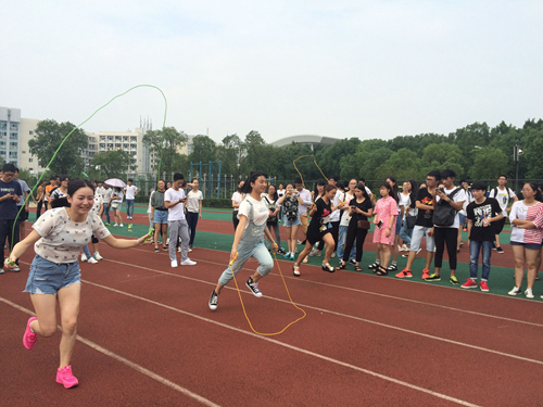 工商系首次将民俗体育活动加入新生始业教育中,以更丰富的形式让新生感受工商系精彩无比的课余生活。此次活动以班级为单位组成参赛团队,用简单的比赛形式,让同学们深刻感受到我国民俗文化之美。此次民俗体育活动包括“跑道跳绳之跑跳接力”、“三人板鞋”和“人椅”这三个内容,这些比赛内容是民俗体育和常规体育活动结合后形成的,形式新颖,内容有趣,极大地提高了同学们参与的积极性。红色的跑道成为大家展示风采的舞台,展示着新一代青年人的风采。在热烈的欢呼声、呐喊声中,民俗活动圆满结束。