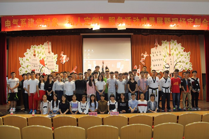 10月9日晚6:00,电气系在树人堂举行了“电气系建党对象‘私人定制’服务活动成果展暨定制会”。系党总支书记晁拥军老师、第二党支部书记张芳芳老师、担任“私人定制”学生导师的建党对象、大一新生出席了本次活动。