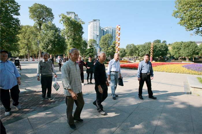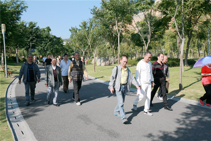 10月21日上午,天高云淡,秋高气爽。为庆祝“重阳节”,弘扬“尊老、敬老、爱老、助老”的传统美德,丰富离退休教师的文化娱乐生活。学院离退休管理处、离退休协会在市区杨府山公园开展了登山、快走欢度重阳节活动。