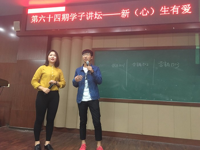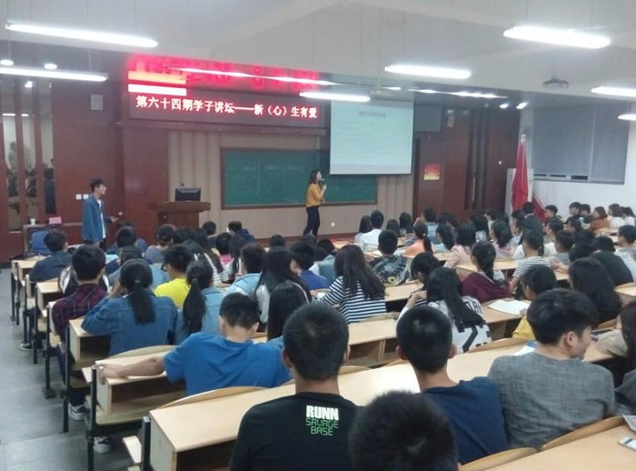 为帮助我系大一学生更好地融入大学生活,积极参加志愿活动,10月18日晚,我系在善学楼101教室举行第64期学子讲坛。本次讲坛以“新(心)生有爱”为主题,我系“演讲与口才”俱乐部负责人杜红阳同学担任主讲。