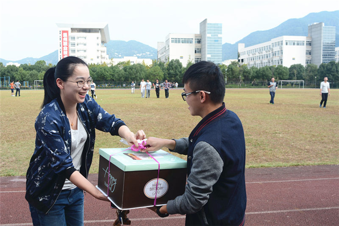 10月10日是会计1403班的班日,寓意十全十美。班主任陈丹老师带领全班40余名学生在运动场开展了“十全十美,爱在深秋”主题团日活动。大家开展“心有灵犀”、“终极密码”、“眉目传情”、“温情一刻”等游戏,有效增进了同学们之间的沟通和交流,增强了班级凝聚力。活动中,辅导员程老师代表财会系为他们送上了蛋糕,并送上十全十美的祝福。