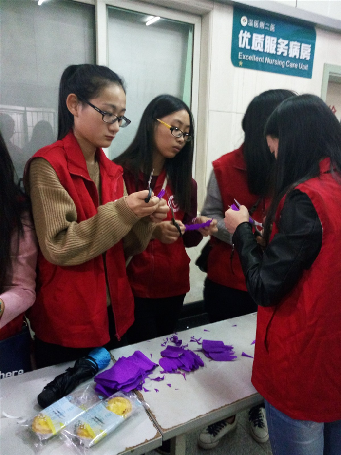 弘扬志愿精神,争做有志青年。10月28日下午,我系匠心花艺俱乐部和手语俱乐部组成的志愿者小分队来到温州医科大学附属第二医院,开展了以“用创意之手,传递温暖爱”为主题的志愿服务活动。