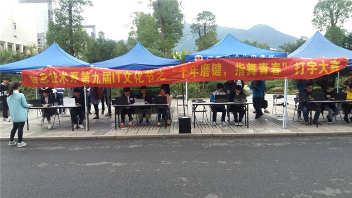 为提高同学们电脑操作水平,提供展示自我的平台,11月25日,由我系创业就业服务部举办的“十年磨键,指舞飞扬”打字比赛在图书馆门前举行。