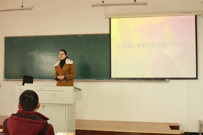 2月25日中午,时尚设计系新学期学生干部团学工作动员大会暨学生干部换届大会在思行楼414举行。系书记谢肖力老师、系学工办主任陈雪珍老师、辅导员罗瑞奎老师出席了会议,会议由王品老师主持。