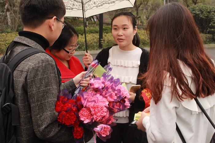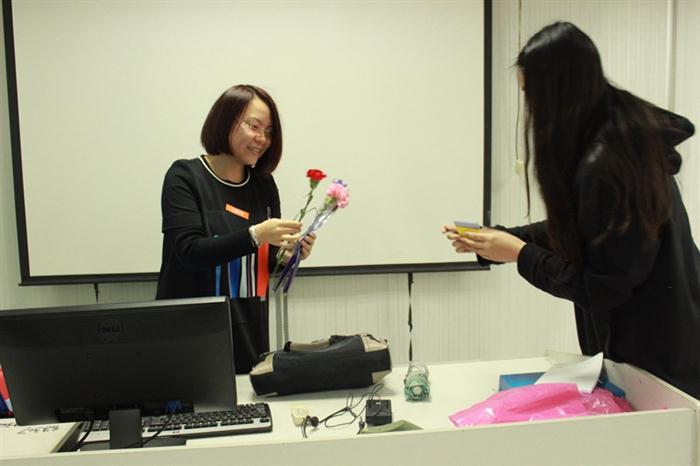 三月八日,春意浓浓的日子,伴着和煦的春风,时尚设计系开展了“一朵花、一张贺卡、一句祝福”庆祝三八佳人节活动。