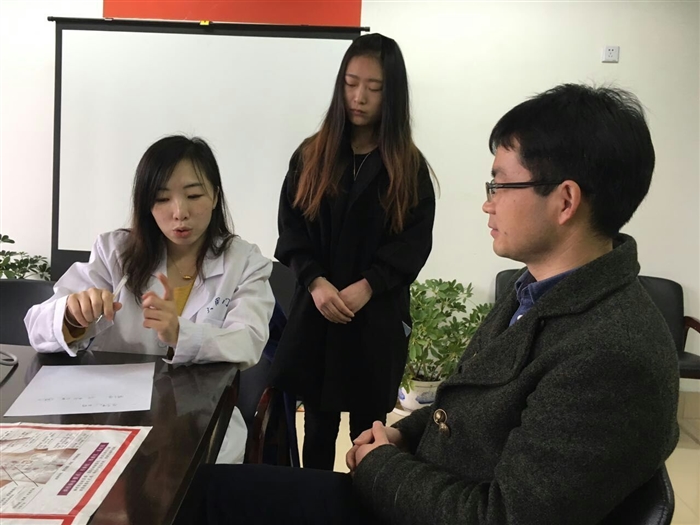 在义诊现场,中医健康咨询师李玮医师及其助手,为教职工提供中医把脉、中医拔罐、艾灸、养生食疗的解讲、科学锻炼运动方法及指导等物流治疗,并为每位就诊教职工提供了专业的中医理疗的知识的传授及意见。比如对对腰背颈椎痛患者,为其现场进行了保健按摩。