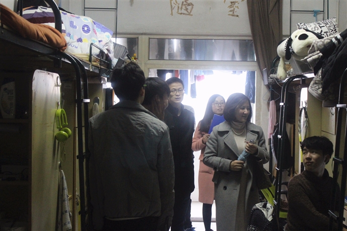 3月22日16:00,系主任薛朝晖、系书记苏跃飞、副主任方倩如带领辅导员、班主任和学生干部对本系学生寝室进行深入走访,了解学生学习、生活情况,把握学生思想动态,对学生寝室环境卫生、寝室文化建设、寝室学风建设等进行教育指导。走访过程中,向同学们传达了浙教工委[2016]3号《中共浙江省委教育工作委员会 浙江省教育厅关于全面深化文明寝室创建要求的通知》文件精神,希望同学们能够进一步提高思想认识,切实增强建设文明寝室的自觉性和责任感,得到了同学们的积极响应。