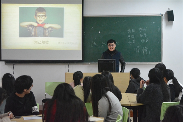 为了让同学们在生活交往中更好的与人相处,同时加强自身修养。财会系心理发展部于3月16日下午1点30分在崇学楼105教室开展由叶怡同学主讲的“知己知彼”心理沙龙活动,此次活动共有36人参加。
