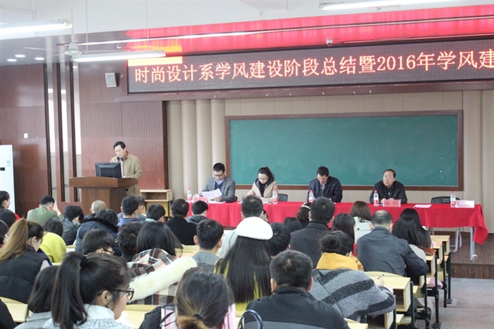 为了进一步推进学风建设,3月23日下午,时尚设计系在善学楼101阶梯教室召开学风建设阶段总结暨2016年学风建设推进会,全系专任教师、班主任、辅导员、学生干部等200余位师生参加会议,学生处处长叶吉波、系主任施凯、系党总支书记谢肖力、系副主任杜少勋出席,学工办主任陈雪珍主持会议。