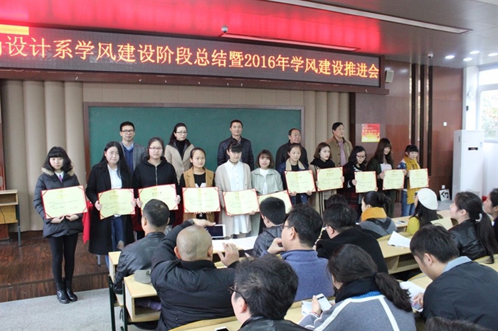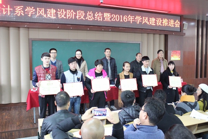 会议首先由辅导员罗瑞奎对时尚设计系学风建设的情况做了阶段总结,系副主任杜少勋宣读了《关于表彰2015年度时尚设计系学风建设先进班集体、先进寝室及先进个人的决定》,共有6个先进班级、11个先进寝室、15位先进个人和5位院级优秀班主任获得表彰,学生代表周伟超、教师代表薛洁先后上台发言,就学风建设与大家分享了切身体会。