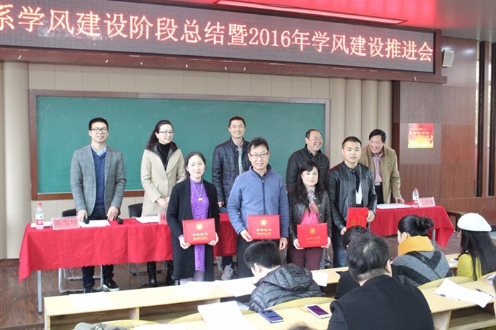 系党总支书记谢肖力指出在系领导班子的高度重视和全体师生的共同努力下,自2015年3月开展“学风建设年”活动以来,我系通过实施以宣传兴学风、以教风带学风、以管理育学风、以榜样树学风和以活动促学风的五大举措,使学风集中建设取得明显成效。一年来,学生违纪率下降60%,违纪现象大幅减少、纪律意识明显增强、行为习惯逐步好转、出勤管理趋于规范、管理队伍日渐成长。同时我们也清醒地认识到学风建设任重道远没有终点,只有坚持不懈、克难攻坚,才能巩固成果、再上台阶。2016年的推进工作要通过“抓联动,实现三个课堂有效协同”、“抓提升,推动管理工作持续完善”、“抓内涵,文化建设助推学风建设”等举措努力促使学生的习惯养成由他律内化为自律,由被动转化为主动。