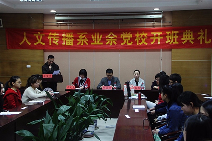 为提高政治文化水平,增强思想道德建设,争做一名优秀的中国共产党员,2016年3月30日下午一点,人文传播系第十六期业余党校开班典礼在知行楼召开,开学典礼由林文龙老师主持,郑国波书记、杨爱美老师、辅导员杨晶晶、衣慧子老师及全体党校新生参加了此次典礼。