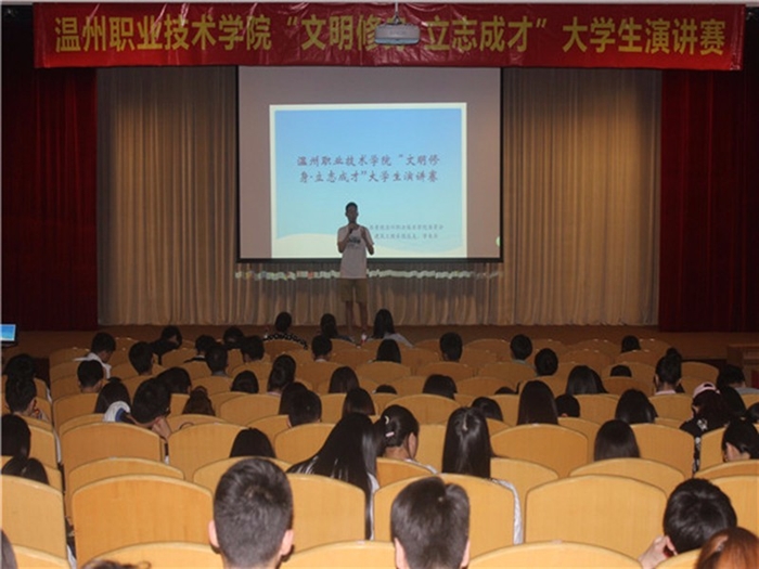 2016年5月11日晚,由学院团委主办、建筑工程系承办的“文明修身,立志成才”大学生主题演讲比赛在学院报告厅举行。本次比赛邀请了财会系党总支副书记吴冰老师、温州大学瓯江学院团委副书记程婧老师、建筑工程系学工办主任余爽老师等三位老师担任评委。