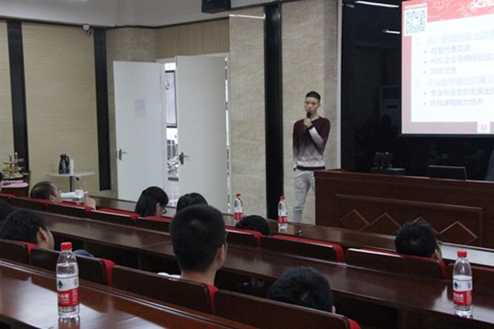 H3C公司陈志令经理为大家分享自身的工作成长经历。在场的校友与专业老师就网络专业毕业生的发展及在校期间课程能力培养等方面做了互动,校友们积极提出个人的建议。