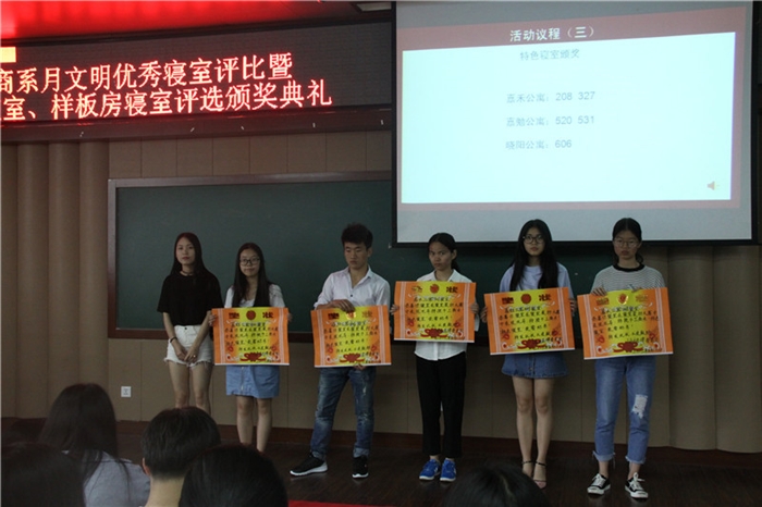 5月24日中午,工商系在善学楼101教室举行了月优秀文明寝室表彰大会,辅导员陈宙老师以及大一大二全体寝室长参与了此次大会。