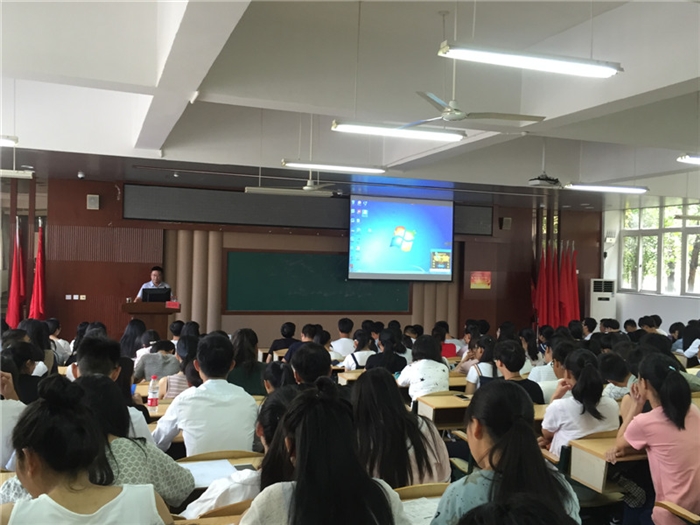 为了增强2016级新生的安全防范意识与自我保护能力,进一步创建平安校园,9月23日上午,工商系在善学楼101开展了以“生命因安全而美丽”为主题的安全知识讲座。此次讲座邀请到学院保卫处副处长纪定峰担任主讲人。