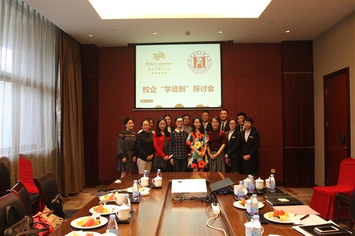 据悉,温州滨海大酒店是工商系酒店管理专业四所“现代学徒制”产学合作单位之一。与合作酒店签署“现代学徒制”产学合作协议后,工商系酒店管理专业大一的96名学生将在下学期前往各酒店进行《酒店晋升培训系统》课程学习。酒店中层以上的管理干部将担任他们的“师傅”,指导学生们真刀真枪地在岗位上学习专业技能、管理服务意识。此次教研活动,围绕酒店方导师的职责确定、学生(徒)的分配与管理、《酒店晋升培训系统》、《酒店文化》等酒店方负责课程的教学管理原则,“学徒制”专项实习及毕业实践的学生管理等涉及“现代学徒制”人才培养模式的实施重点展开讨论,取得了广泛共识。此外,校企双方针对酒店专业的学生学情,一致认为学生的职业观、价值观需要学校方专业教师和酒店方导师的共同引导,需将酒店文化等课程融入到平时教学和专业教育活动中。