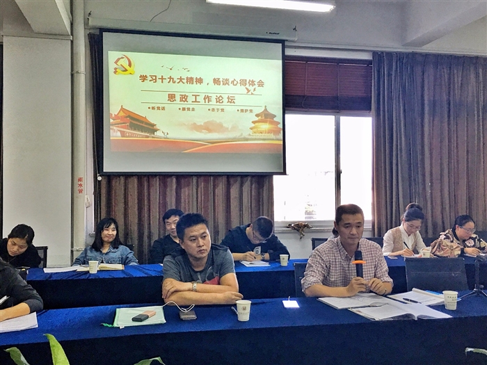 (学生处通讯员 陈冬瑞)10月27日下午,新学年第一期思政工作论坛在教师发展中心606会议室举行。全体辅导员汇聚一堂,相互交流,共同分享学习十九大报告的心得体会。论坛由学生处处长叶吉波主持。