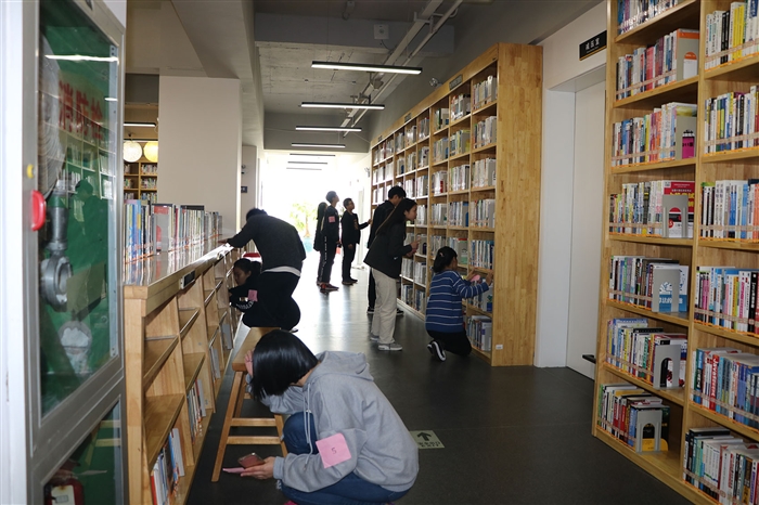 决赛过程中,无论是在五彩斑斓的研修室,书香环绕的阅读交流区,亦或是在环境舒适、音质辽阔的视听空间,都能看到选手们通力合作、忙碌而坚定的身影,他们或在根据线索寻书、查找论文,或在全力邂逅有缘人获取通关信息。