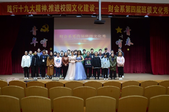 (财会系通讯员 程红波、詹志杰)为了凝聚班级力量、增进团队意识、推进校园文化建设,财会系围绕“践行十九大精神、推进校园文化建设”这一主题,于12月7日晚在树人堂举办了第四届班级文化秀活动。财会系副主任简家进、王赛芝,全体辅导员,全体新生班主任和2017级学生参加活动。