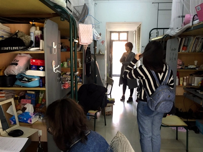 学期伊始,已经返校的学生都忙着收拾行李、整理床铺、打扫卫生,迎接新学期的到来。看到老师们走访寝室并向大家问候新年,同学们非常开心,高兴地给老师们品尝家乡带来的特产,还分享她们的假期经历。