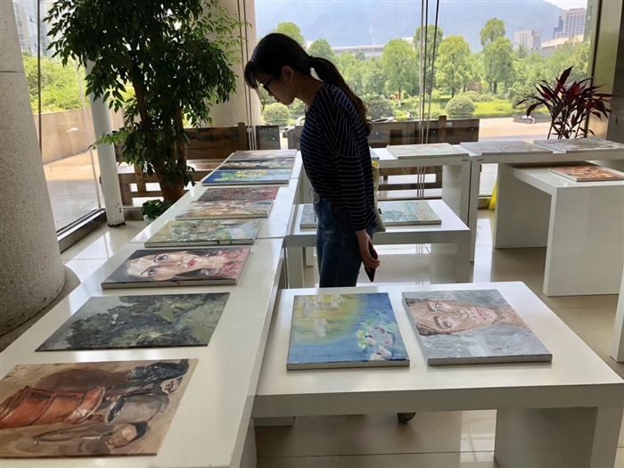 据悉,本次展览的油画作品均是在潘罗敏老师的指导下完成的。潘罗敏作为时尚设计系美术外聘教师、龙湾区慈善总会潘罗敏慈善艺术工作室主任、上海523艺术中心签约艺术家,在教学和绘画方面都具备深厚的底蕴。此外,为进一步优化图书馆的艺术氛围和阅读环境,潘罗敏在开幕式上为我院图书馆捐赠两幅个人作品,得到图书馆全体员工的赞赏和一致肯定。
