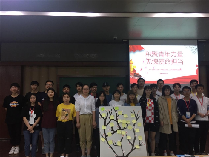 活动最后,所有参会人员将人生理想、青春志向化为文字,张贴在理想树上,以提醒自己不忘初心,不断前行,争当新时代的弄潮儿。