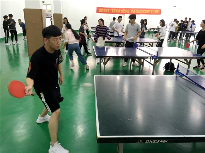 (通讯员 建筑工程系王丛思)为鼓励同学们养成强身健体的良好习惯、发挥体育拼搏精神、增强班级凝聚力,9月26日,建筑工程系在体育馆一楼举行2018年“筑梦扬威 奋勇争先”体育节启动仪式暨新生乒乓球赛。建筑工程系党总支书记金建孟、思政辅导员、班主任以及400余名大一新生参加了活动。