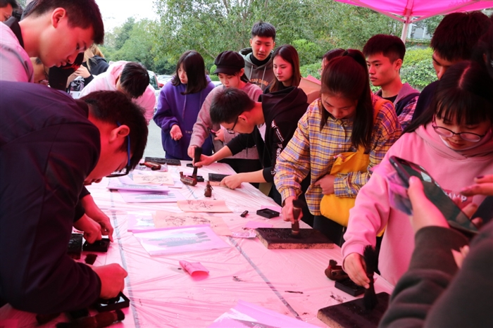 这是11月14日我院图书馆举办的“感受传统文化魅力 体验雕版活字印刷”活动现场,600余名师生参与了本次体验活动。