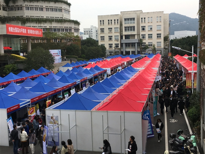 (招生就业处通讯员 余爽)为进一步做好毕业生的就业推荐和服务工作,积极为用人单位输送应用型人才,温职院2019届毕业生预就业招聘会于12月12日下午在学院明德楼广场拉开帷幕。