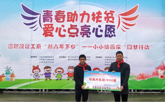 (通讯员:包邦胜)1月3日早上,建筑工程系“青春助力扶贫?爱心点亮心愿”新青年下乡之小小绘画家圆梦行动在泰顺县仕阳镇二小举行。建筑工程系党总支书记金建孟、泰顺县团委副书记毛方健、仕阳镇人大副主席王玉旦参加活动。