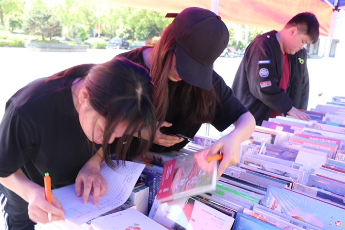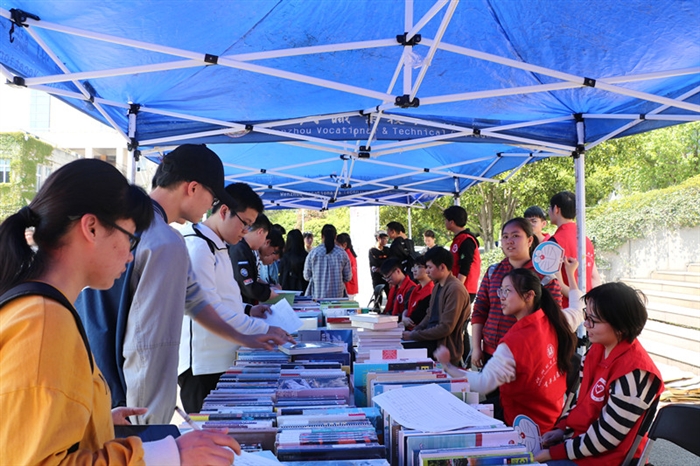 本网讯 (图书馆通讯员 林蒋叶 朱凤舞)最美人间四月天,花开轻舞,莫辜负了这读书好时光。为了迎接第24个“世界读书日”,鼓励师生善于读书、乐读好书、大量读书,让师生在阅读中不断提升阅读品味,坚定文化自信,使阅读成为校园的风尚,让资源采购更符合读者的需求。图书馆联合新华书店、三星书业等图书供应商于4月17日在明德楼广场隆重举办“你选书、我买单”现场荐购会暨浙江省高职高专大学生书名接龙赛事抽奖活动。博学易知、国研网、环球英语、知网、万方等数据库供应商积极参与此次活动。