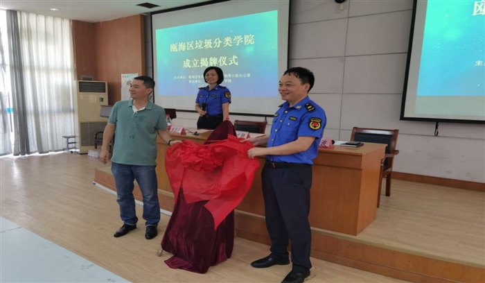 本网讯(蒋家桥校区通讯员 潘修修 )8月7日上午,温州市瓯海区垃圾分类学院在蒋家桥校区成立,这是我市首个垃圾分类专门学院。该学院由瓯海区综合行政执法局与我校合作共建,是集垃圾分类教育培训、宣传策划、理论研究等于一体,线上线下相结合的综合性平台,旨在进一步推广普及瓯海区垃圾分类工作,为瓯海区垃圾分类教育培训普及提供强力支撑。