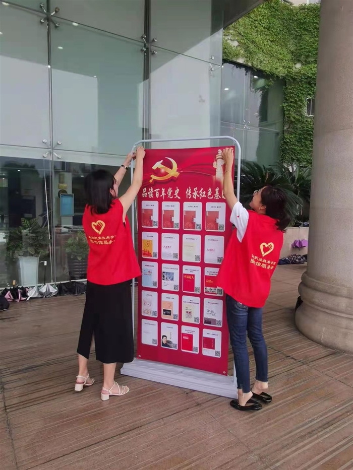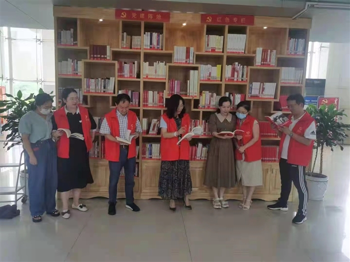 机关党委第九支部线上线下同时推进红色阅读空间建设,不仅为师生提供了“四史”学习的实体阅读空间,还突破了阅读场地限制和纸本限制,解决了广大师生在暑假无法到图书馆内阅读及借阅的问题,可以随时阅读、随处阅读,不仅拓展了“四史”阅读范围,丰富“四史”阅读形式,也为师生提供了线下和线上阅读与交流空间。