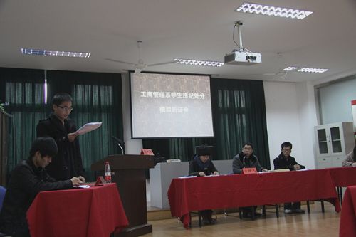学生违纪管理民主听证制度正日益引起人们的关注,为充分发扬民主,改变传统情况下违纪学生被动接受学校处分的管理模式,近日,工商系举办了学生违纪处分模拟听证会,给违纪学生在接收处分前一次申辩的权利。院党委委员、纪委书记何忠,保卫处处长赵清弟,学生处副处长苏跃飞,工商系党总支书记李建中参会指导。