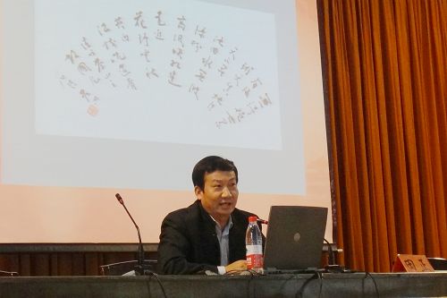 讲座中,田主任旁征博引、深入浅出,就我国书法的发展历程、学习书法的意义、书法的结构及章法等内容进行了讲解。他强调,书法水平的提高不是短期内就能速成的,只有“每天坚持练一页”,才能达到“精彩尽在笔端”的境界。