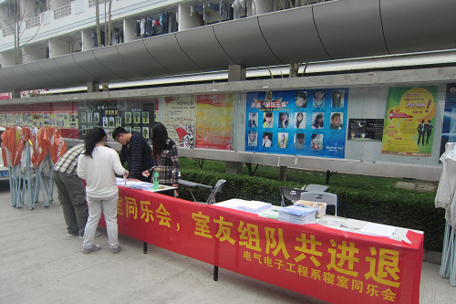 为进一步推动寝室文化的蓬勃发展,丰富学生课余生活,电气电子工程系将在接下来的两周时间开展“寝室同乐会”大型寝室户外活动,此次活动共分三个项目:男子篮球3V3、女子链接加速和男女生校园定向活动。为了让更多的同学了解此次寝室活动的具体内容,近日,我系在生活区开展了“寝室同乐会”前期宣传工作,安排了权益部的干事在现场向大家解释活动内容,并在现场准备了各种宣传品,如印制了此次活动内容的日历、宣传海报等。同时,电气系也安排了工作人员,为同学提供现场报名服务,无论是电气系学生还是其他系的学生只要感兴趣都可以报名参加。