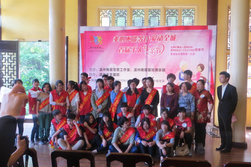 5月12日是一个感恩的日子,在这个日子里计算机系志愿者共30人来到仙岩风景区——梅雨潭,参加了由温州晚报雪君工作室、温州晚报爱玩俱乐部主办,温州“幸福驿站”社工中心、温州市心理咨询行业协会等单位共同协办的“孝心不能等待 爱动全城 首届千人母亲节”活动。