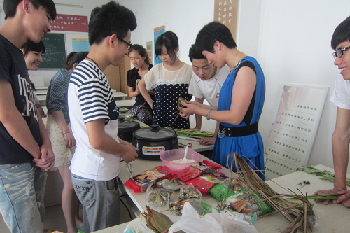 6月9日下午,我系在实训2-203开展“粽叶飘香,品味端午”之包粽子活动,全系30余名同学参与到本次活动中来,本次活动特意邀请专业教师参与其中。在老师的指导下,同学们有模有样的开始动手包起粽子来卷粽叶、装馅料、扎藤绳、绑粽子.大家经过几十分钟的动手后尽管包出来的粽子有大有小、形状不一,但每一个粽子都充满了感情。