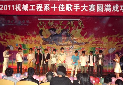 2011年5月5日晚,机械工程系“十佳歌手”大赛决赛在学院报告厅拉开了帷幕。经过初赛和复赛,一路过关斩将的15名选手来到总决赛的舞台,用自己的歌声为建党九十周年献礼。