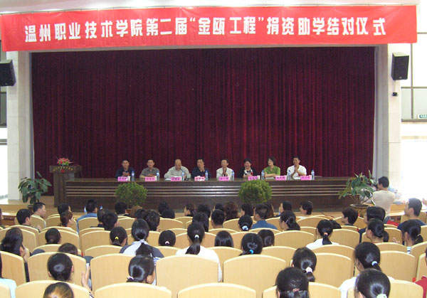 (来自人文系俞玲、马飞燕、夏海燕的报道)10月15日下午,我院人文系在学院图书信息中心一楼学术报告厅举行了“金瓯工程”与温州职业技术学院捐资助学结对仪式。