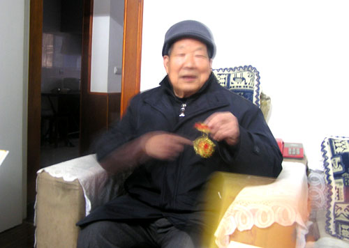 计0505班班长潘亮带队的一行来到了王英民老人家里,为老人送上了鲜花和慰问品。王英民老人今年85岁,曾任上海军区师长、荣立二等功,翻看起革命战争年代的旧照片,老人还是非常激动。王师长曾参加解放上海的战争,经历了战火纷飞的年代,家里的几枚光闪闪的徽章铭刻了那段激情燃烧的岁月。