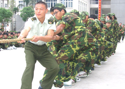 9月10日下午,信息楼前的拔河比赛场面甚是壮观,在大家欢呼呐喊声中拉开了“国防教育文化节”活动的序幕。由各军训营队选拔出来的男女队员与教官们一起组成各自的参赛队参加角逐。在拔河比赛现场,军训教官们各个捋肘屏息,成了参赛的排头兵。学生队员们同样也身着一身橄榄绿,各个摩拳擦掌,铆足了劲,在教官的带领下拼劲十足。而旁边的啦啦队的呐喊声更是震耳欲聋,此起彼伏。军民同心,让比赛增色了不少。最后,工商系军训营,建工系军训营在激烈角逐中脱颖而出,取得决赛资格。9月12日,经过一场“龙虎斗”,实力强大的工商系军训营击败对手,一举夺魁,迎来了“开门红”。