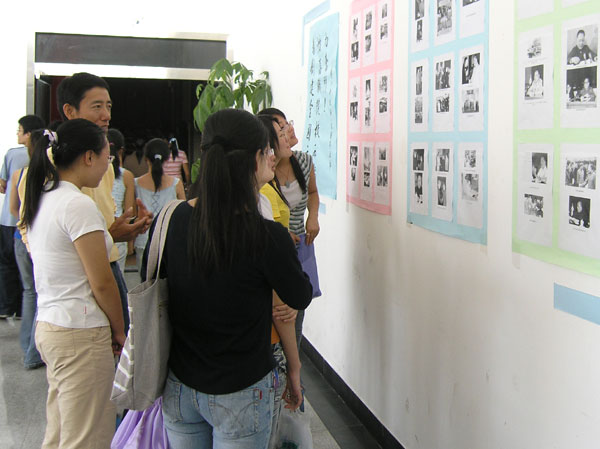 同学们认真观看伟人图片展