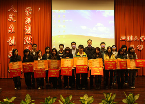 4月1日晚,人文系在信息楼报告厅举行了创建“学习型”班集体表彰汇报大会。该系各班在报告会上展示了班级风采,介绍了班级的构成情况、专业特点以及班级的特色,许多班级还通过通过民主的方式确立班级理念、班级精神、班级哲学、班级核心价值观,如文秘0702班级的班级理念:精诚一致,追求卓越;班级精神:自信、励志、合作、竞争;班级风格:求实、高效、奋进;班级文化:诚信、开放、创新、卓越;班训:成人、成才、成功;传媒0701班将每个人的点滴努力汇聚,将每个人的励志方向齐集,以“励志”为主题打造“励志型”班集体,将“天行健,君子以自强不息”的理念烙在班级每一位成员心中;文秘0801班级在创建“学习型”班集体活动中提出班级的格言:竞争不是比谁努力,而是比谁更努力,最美的年龄为最纯的梦想尽最大的努力。通过学习型班级建设,许多班级形成了积极向上、团结和谐的氛围。最后,文秘0702班级被命名为示范型班集体;传媒0701班级为励志型班集体;英语0703班级、文秘0801班级、传媒0801班级为实践型班集体;社管0701班级、英语0701班级、文秘0701班级为社会拓展型班集体;传媒0802班级为荣誉型班集体。