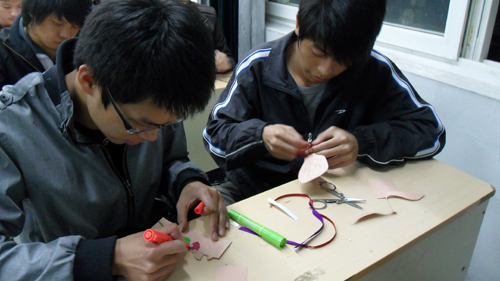 “励志周”为期两周时间,以 “书签引路,徜徉书海”为活动主题,组织学生干部、入党积极分子们开展个性化读书活动。除了组织学生阅读“天天向上”共读社内规定的书籍外,还通过精彩纷呈的PPT阐述和积极热烈的座谈讨论形式让大家各抒己见,畅谈观后感。此外,学生们亲手制作书签的小比赛也将大家的兴趣引至最高点。他们通过收集材料、亲手绘制、剪裁等,制作出了一张张极富个性的书签。而书签上的格言或个人寄语,也是每一位学生读书后的体会和感悟。