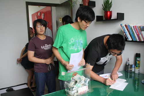 在仪式上,叶书记讲到,建立校友爱心基金这个平台非常好也非常有必要,通过这个活动能将广大校友对母校的深厚情谊凝聚,成为系友、校友、师生间加强联系的温情纽带,共同建设和谐爱心校园,帮助更多需要帮助的同学,同时也希望受过资助的同学以后能够反馈学校,扩大我们学校的基金,让更多的贫困学子能够得到同样地帮助。仪式结束后,08级各预备党员在叶书记的带领下陆续献出了自己的爱心,其中有些是自己打工所得,有些是学习风尚奖的奖金,两位在外实习的大三学生,听到校友爱心基金成立的消息后,不能亲自来参加,就将自己获得的学习风尚奖的部分奖金汇到了校友爱心基金账户。虽然每个人捐资数目都不同,但寄予的爱心都是一样的。