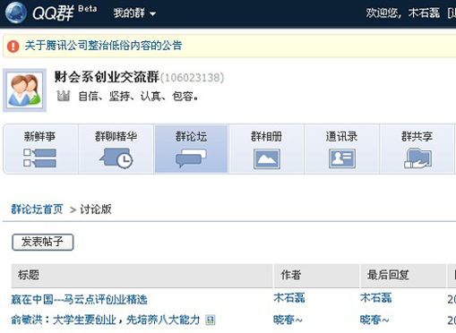 此次开展的活动以网络创业为中心,并伴有各种教育形式开展创业讲座、创业经验交流、创业素质拓展等系列主题。为了让更多对创业感兴趣的同学有一个交流的平台,创业实践部还建立了创业讨论群,在群中公布各种招聘、兼职和创业信息,同时还提供了有志创业的同学交流区,让同学们在群中交流各自的创业心得与经验,并利用群内资源提高成员的网店推广,达到资源共享、相互提高、共同进步。